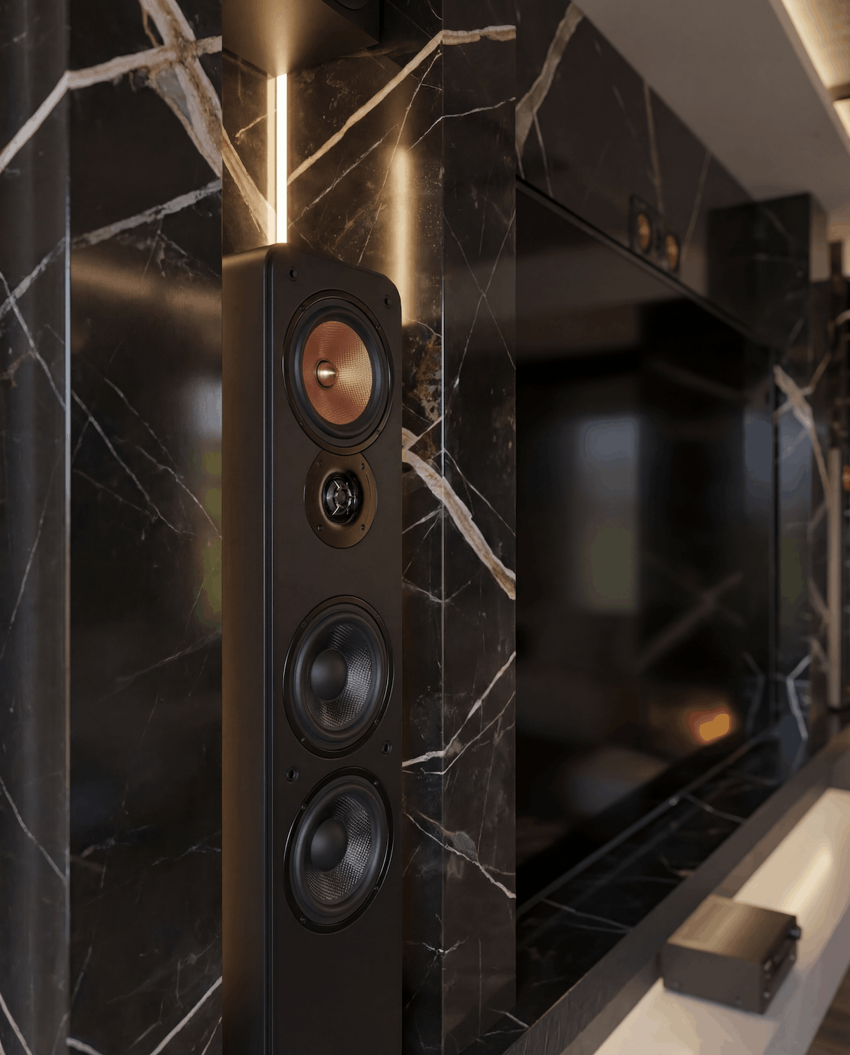Strefa wypoczynkowa – salon z ścianką TV, kominkiem i systemem audio