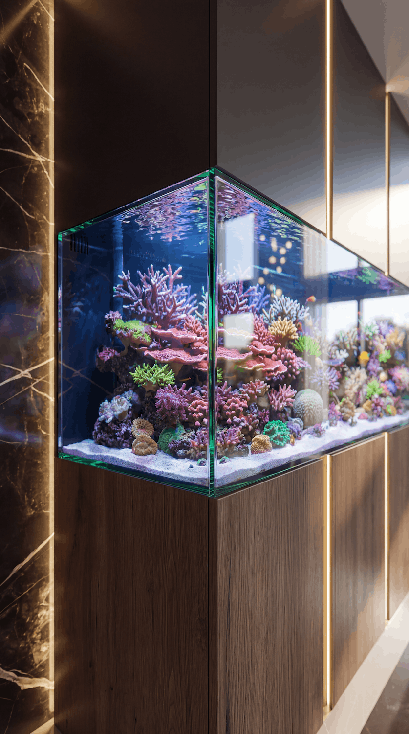 Akwarium w tej aranżacji nie jest wyłącznie efektownym dodatkiem. Staje się elementem budującym nastrój, głębię i indywidualny charakter całego wnętrza. Dzięki temu jadalnia nabiera wyjątkowości, której nie da się osiągnąć gotowymi, powtarzalnymi rozwiązaniami.