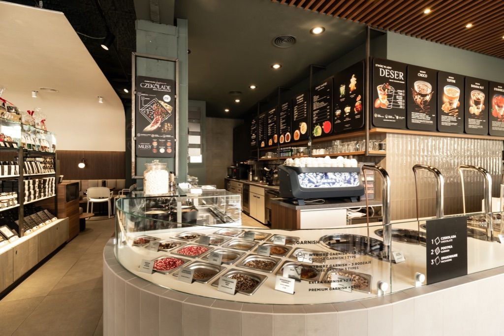 Lokale i punkty Karmello to nie tylko wyrafinowany smak, ale także nowoczesne i eleganckie przestrzenie