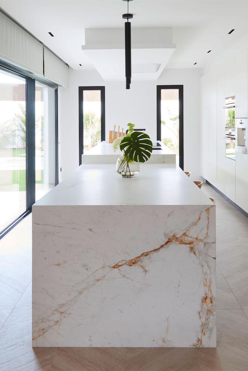 opis: Model jest inspirowany klasycznymi białymi marmurami i pokryty złotymi i szarymi żyłkami wyeksponowanymi na tle złamanej bieli. Jest dostępny w wykończeniach Décor Polished i Silk. Ten ostatni wariant wykończenia imituje efekt erozji na powierzchni materiału pokrywającej się z deseniem złotych żyłek, co zapewnia bardziej naturalny wygląd płyty.