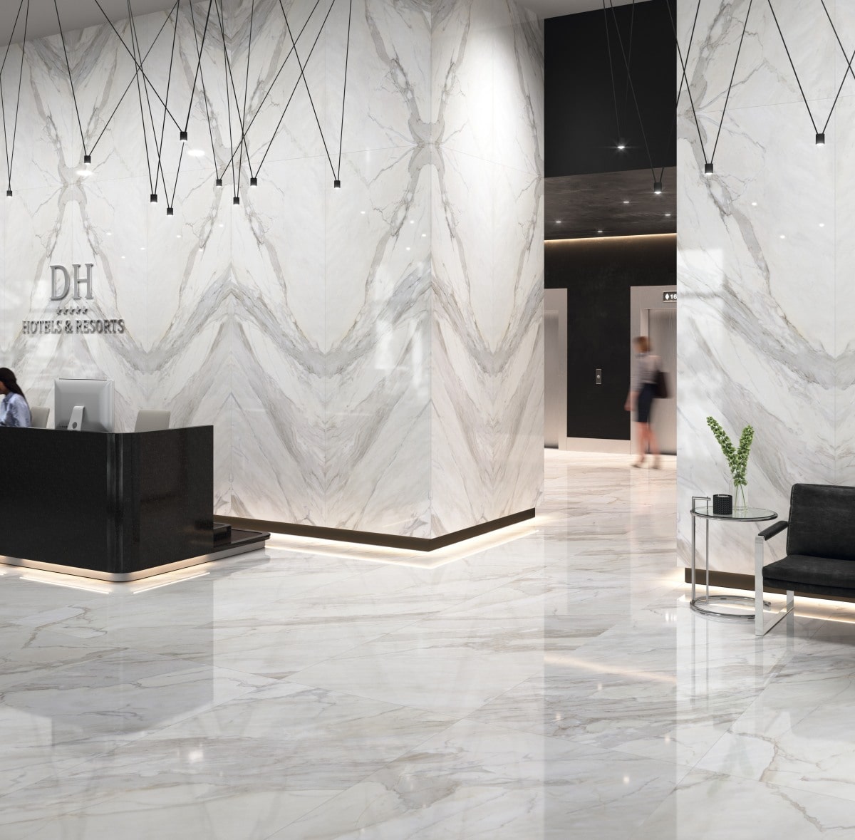 Spiek Calacatta wykończenie : natural, poler format: 810×3240; grubość: 12mm format: 1200×2600 • 1200×1200 • 600×1200 • 1000×3000 • 1000×1000 • 500×1000; grubość: 5.6mm format: 1200×2600; grubość: 3.5mm gatunek: I gwarancja producenta: 5 lat DETAL PRZESTRZEŃ