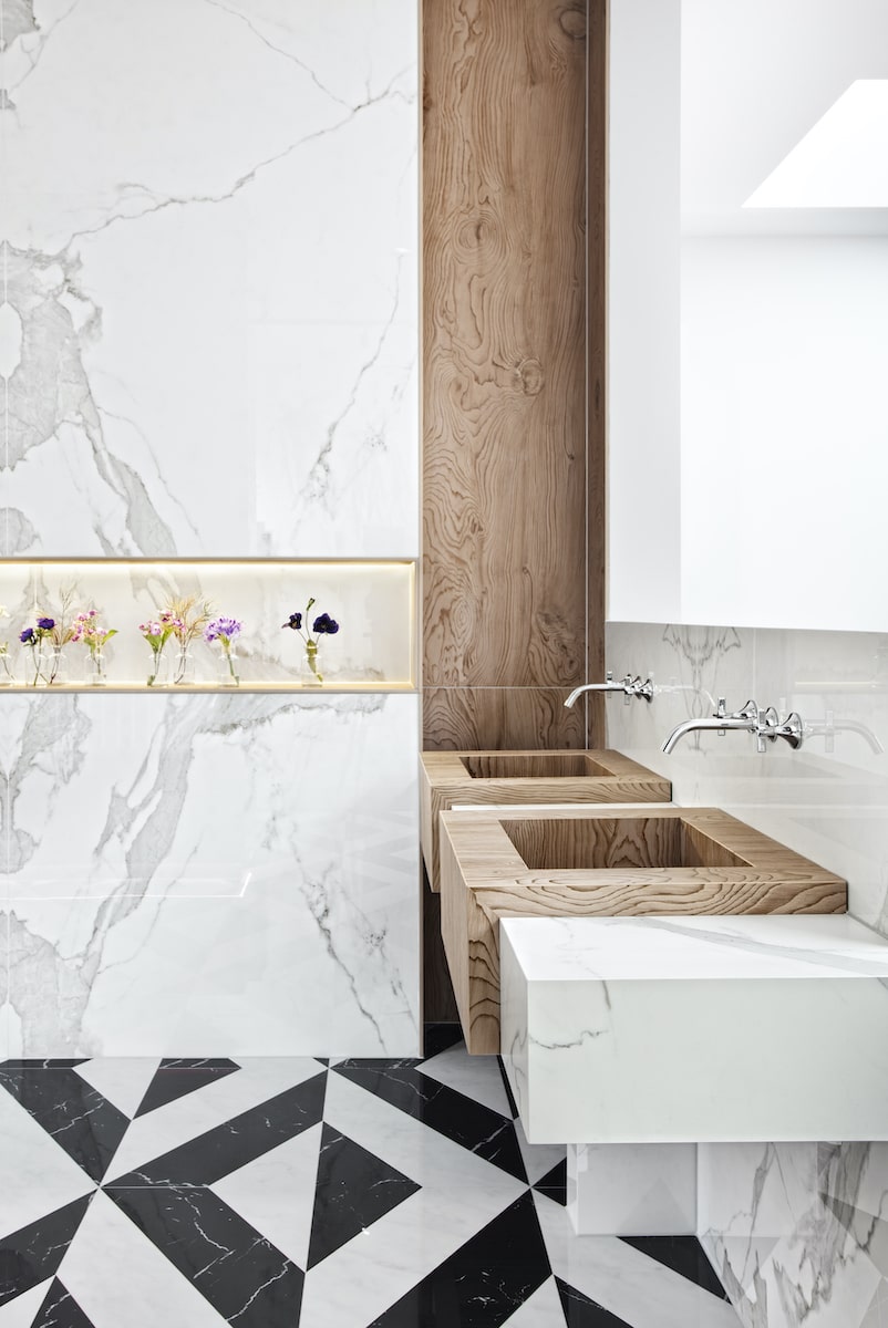 Jedność blatu i umywalki – design, który płynie w jednym rytmie.